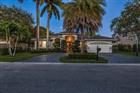 Panoramic golf and water views! Elegant home located on the 8th Fairway featuring a newer roof, newer AC units, freshly polished marble floors, and newly installed wood-plank flooring in bedrooms and office. Light and bright split floor plan with soaring ceilings and abundant recessed lighting. Offers four en-suite bedrooms plus office, four and a half baths including cabana bath, spacious master suite with sitting area and large glass sliders overlooking the pool, patio, and golf course. Master bath includes water closet, bidet, jacuzzi tub, walk-in shower, and ample closet. Gourmet kitchen with built-ins, wine closet. Beautiful backyard with covered patio, summer kitchen, and pool with jacuzzi overlooking the fairway. 3-car garage with built-ins. Located in a gated golf course community