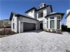 One or more photo(s) has been virtually staged. Located at 7394 Gathering Court within the exclusive gates of Reunion Resort, this brand-new contemporary estate captures sweeping views of the renowned Watson Golf Course and delivers an elevated standard of resort-style living. A grand circular paver driveway and custom iron double doors set the tone, opening to a gallery-style foyer illuminated by tiered gold-and-crystal chandeliers and complemented by wood-look porcelain tile throughout. The dramatic great room showcases soaring 16-foot vaulted ceilings with coffered detailing and expansive impact-resistant windows that frame the lush fairways like artwork. Designed for both beauty and performance, the chef’s kitchen features solid wood custom cabinetry, a bold navy statement island topped with 3-inch mitered quartz, professional-grade appliances including a gas range, and a hidden walk-in pantry that preserves a clean, modern aesthetic. The main-level primary suite offers a private retreat with tray ceilings, custom walk-in closets, and a spa-inspired zero-entry shower with frameless glass and designer finishes. A rare highlight is the fully self-contained private-entry apartment complete with its own balcony, walk-in shower, and dedicated laundry, ideal for guests, multigenerational living, a private office, or added flexibility. Expansive accordion doors create seamless indoor-outdoor flow to the extended paver patio and custom summer kitchen, perfectly positioned to enjoy tranquil golf course views. Additional features include an epoxy-finished garage, oversized laundry room with custom cabinetry and sink with access to world-class amenities including multiple resort pools, fitness facilities, 24-hour guard-gated security, with HOA-covered internet, cable, and lawn care for effortless living. This exceptional residence blends architectural artistry with the ease and elegance of everyday luxury.
