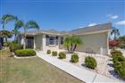 This charming, three bedroom, Magnolia model has many upgrades. These include, kitchen cabinets, quartz counter tops and under counter lighting! Lving room has tray ceiling and crown molding. It is nicely decorated with windows blinds and designer drapes.Both bathrooms have granite counter tops. The master bath has customized pull out baskets and large unique walk in shower. The glassed in Lanai has ceramic tile and a private back yard. A new air conditioner installed in 2024. The two car garage will easily fit you car and a golf cart. The owner has recently had easy close sliding hurricane shutters on most windows, as well as protective easy to install panels for the Lanai. Located centrally in the the community, close by the South Club House where you will enjoy the restauant,inside and ootside pools , fitness center, pickle ball courts and SO much more.