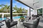 Exquisitely updated tropical waterfront pool home, perfectly positioned two homes from the point on a wide canal with a turning basin. Enjoy a 9,000 lb boat lift and expansive dockside Tiki Hut designed for effortless lounging and entertaining. Light-filled open-concept living includes 3 bedrooms and 2 spa-quality baths. The gourmet kitchen showcases a Sub-Zero refrigerator, Sub-Zero wine cooler and Wolf 6-burner gas range. Additional features include a split bedroom plan, impact windows and door, and a saltwater pool. Premium upgrades: 2024 travertine pool deck and driveway, 2024 pool resurfacing, whole-house generator, 2022 saltwater system, 2019 new roof, outdoor shower and lush landscaping and lighting.