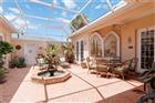LOCATION! 3.8 miles to Manasota Key Beach! AND NEW ROOF 2024! TURNKEY HOME WITH GUEST SUITE WITH KITCHENETTE!– FULLY FURNISHED & Move-In Ready! And you will not believe what's included! Located in the quiet and desirable community of JACARANDA Heights, this beautifully maintained home comes FULLY FURNISHED! and includes EVERYTHING you need—just bring your suitcase! Enjoy peace and privacy on a corner lot in a cul-de-sac, just minutes from historic downtown VENICE and MANASOTA KEY BEACHES. Step through elegant cherry wood DOUBLE DOORS into a private, TUSCANY STYLE SCREENED COURTYARD, featuring a THREE TIER FOUNTAIN, brick pavers, and a TUSCAN-style mural—perfect for relaxing or outdoor dining. Inside, you'll find high-end finishes throughout, including CROWN MOLDING, engineered HARDWOOD floors, cherry wood cabinets, and GRANITE countertops. The kitchen offers stainless steel appliances, a breakfast bar, and a spacious dining area. The large primary suite includes a walk-in closet, French doors to the courtyard, and a private bathroom with double sinks and a walk-in shower. A SEPARATE GUEST HOUSE offers its own entrance, kitchenette, and full bathroom—great for guests, in-laws, or a home office. Additional features: ALL Kitchen matching Frigidaire Gallery appliances included, Washer & Dryer, Hurricane shutters, Fenced backyard with side patio, LOW HOA, NO CDD fees FULLY furnished – TURNKEY sale! This rare opportunity won’t last long—homes in Jacaranda Heights rarely hit the market! BRING ALL OFFERS!