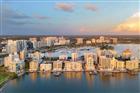 One or more photo(s) has been virtually staged. Positioned on Sarasota’s sought-after Golden Gate Point, this exceptional Harbor House West residence combines waterfront luxury with the ultimate in city convenience. Just moments from the vibrant energy of downtown, enjoy effortless access to world-class dining, boutique shopping, cultural venues and waterfront promenade, all while returning home to a serene retreat with captivating views of Sarasota Bay, the Ringling Bridge and the barrier islands beyond. Reimagined in 2025, this residence showcases a fresh, refined aesthetic and thoughtful enhancements that make it the remarkable home it is today. Go through the glass front door into a light-filled open layout enhanced by tile flooring and crown molding in the main areas. The great room centers around a striking fireplace accent wall, while a wall of sliders frames an unforgettable panorama of the bay and bridge, where the water glistens by day and sunsets ignite the sky each evening. Just beyond, a concrete-enclosed patio offers a private setting for dining and lounging against the stunning waterfront backdrop. The beautiful new kitchen is a showpiece, featuring GE stainless steel appliances, including an induction cooktop, microwave drawer, and oven, plus a Fisher Paykel refrigerator, quartz countertops, tile backsplash and abundant wood cabinetry with upgraded hardware. A convenient laundry room with a stackable washer and dryer and extra storage enhances everyday functionality. Three spacious bedrooms ensure comfort and privacy. The primary suite boasts an expansive custom walk-in closet, oversized window with breathtaking bridge and bay views, and a spa-like bath with a long dual-sink vanity, linen cabinet and walk-in shower. Two guest suites each offer large closets and picture windows with water views. Additional highlights include assigned covered parking accessible from the unit with EV charger wiring run to carport ceiling for future installation, a day dock, ample guest parking, and pet-friendly living. Harbor House West provides a secure, well-managed community in a prime waterfront setting, delivering a balance of coastal serenity and downtown sophistication.