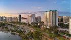 Under contract-accepting backup offers. Set within Sarabande, one of downtown Sarasota’s most distinguished bayfront addresses, this third-floor residence blends comfort, functionality, and the opportunity for thoughtful modernization. The elevator opens directly outside the front door, leading into a spacious layout designed to capture Sarasota’s most breathtaking sunsets and sweeping views across Sarasota Bay. Inside, the great room is bright and inviting, with sliders opening to a private terrace and transom windows that frame the bay and beyond. The kitchen features solid-surface countertops, white cabinetry, and a generous eat-in nook, creating a bright and practical space for everyday living or casual entertaining. The primary suite offers two walk-in closets and an en-suite bath with a walk-in shower and vanity area, while the guest bedroom, with floor-to-ceiling windows and plantation shutters and a connecting Jack-and-Jill bathroom, ensures privacy and comfort. A den with French doors provides flexibility for an office or media space. Tile flooring flows through the main living areas, complemented by carpet in the bedrooms and den. The laundry room includes cabinetry and a utility closet for added convenience. The residence has been exceptionally maintained and offers a clean, livable foundation for a new owner to personalize. Beyond its walls, this home’s appeal lies in its setting within one of Sarasota’s premier luxury towers, steps from downtown dining, cultural venues, and the waterfront Bayfront Park. Sarabande’s reputation for prestige, full amenity suite including guest suites, and location makes this residence an extraordinary opportunity to enjoy Sarasota’s coastal city lifestyle, enhanced by a front-row seat to its most unforgettable sunsets.