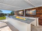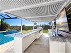 One or more photos have been virtually staged. Luxury and sophistication meet resort-style living in this stunning three-bedroom, 3.5-bath custom pool home with den, positioned on a private conservation lot. Designed for relaxation and entertaining, this residence showcases impact glass throughout and countless high-end upgrades. Go outside to your personal paradise, an expansive lanai and backyard retreat that redefines outdoor living. Enjoy a heated saltwater pool and spa with two fire bowls, three waterfalls, a sun shelf with bubblers and brilliant multi-color lighting, all framed by a panoramic screen enclosure for unobstructed preserve views. Landscape and cage lighting add nighttime ambiance, while the custom outdoor kitchen under a pergola features granite counters, a top-tier grill, griddle, sink, beverage refrigerator, side burner and a fire table bar with seating for six. Movie nights are made easy with a lush accent wall, floating shelves, cabinetry and a TV mount. Just beyond, you’ll find a private putting green, ideal for honing your short game and entertaining guests. Inside, every detail has been thoughtfully curated, from plank tile floors and shiplap accents to tray ceilings, plantation shutters and designer lighting. Each bedroom includes its own en-suite bath and walk-in closet, offering privacy and comfort for family and guests alike. The chef’s kitchen is a showstopper with stainless appliances, gas cooktop and range hood, quartz countertops, tile backsplash, soft-close cabinetry, and an oversized island trimmed in board and batten. In the living room, wood beams, shiplap detailing and a grand chandelier create an inviting ambiance, complemented by custom built-ins with accent lighting and storage benches. The entryway makes a bold statement with shiplap walls, a cypress plank ceiling and a sleek glass-paneled front door. The primary suite is a retreat featuring a coffered ceiling with cypress planks, accent wall detailing, a custom walk-in closet with display lighting and a spa-like bath complete with dual vanities, quartz counters, shiplap walls and a luxurious step-in shower with dual shower heads. In the gated community of The Isles at Lakewood Ranch, residents enjoy access to a lagoon-style heated pool, state-of-the-art fitness center, yoga studio, tennis and pickleball courts, basketball, fishing pond, dog park and beautifully maintained grounds. Just minutes from UTC shopping and dining, Waterside Place, downtown Lakewood Ranch, Sarasota and Gulf beaches. This exceptional home blends custom craftsmanship, modern elegance and the best of Florida living.