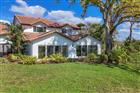 This sophisticated end-unit golf course villa in Prestancia offers sweeping views of the 14th green and 15th fairway of the TPC Stadium Course and a truly maintenance-free lifestyle in one of Sarasota’s premier gated communities. Located in the highly sought-after Villa Palmeras section, this spacious residence provides over 3, 100 square feet of light-filled living space with soaring ceilings and panoramic golf course views. A generous two-story living room with skylight, plantation shutters, and expansive windows creates an open, airy feel rarely found in villa living. The formal dining room is framed by oversized windows, ideal for entertaining. The updated kitchen features wood cabinetry, granite countertops, stainless steel appliances, pantry storage, and a bright, casual dining area overlooking the fairway. The primary suite offers vaulted ceilings, engineered hardwood flooring, dual walk-in closets, and French doors opening to the enclosed, air-conditioned Florida room with tranquil golf course views. The en-suite bath includes dual vanities, a walk-in shower, and tile flooring. Two guest bedrooms provide generous accommodations with ample closet space and access to a full bath with a solid surface vanity and tub/shower combination. An upstairs flex space functions perfectly as a home office, den, or additional storage. A powder bath is conveniently located off the main living area. The enclosed Florida room extends the home’s footprint and showcases wall-to-wall sliders opening to the spacious yard, ideal for enjoying Sarasota’s year-round sunshine. Additional highlights include hurricane impact windows and doors, plantation shutters throughout, tile and engineered hardwood flooring in the main living areas, an interior utility room, and a two-car garage. Villa Palmeras residents enjoy two heated community pools and comprehensive HOA coverage, including building insurance, roof maintenance and repairs, exterior upkeep, landscaping, irrigation, pest control, and basic cable and internet, making this an ideal lock-and-leave or seasonal residence. Prestancia is a 24-hour gated golf community offering an optional TPC membership for championship golf and social amenities. Ideally located minutes to The Legacy Trail, Siesta Key Beach (ranked among America’s top beaches), downtown Sarasota, St. Armands Circle, and the UTC shopping and dining district, this home delivers the best of Sarasota luxury golf course living.