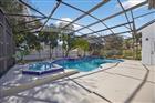 Under contract-accepting backup offers. Welcome to this beautifully renovated 2-story modern farmhouse featuring 4 bedrooms, 2.5 bathrooms, and an expansive enclosed pool + hot tub oasis. Thoughtfully redesigned with tasteful finishes throughout, this home delivers privacy, functionality, and style. The downstairs layout centers around an open living concept with new flooring, modern lighting, and a bright farmhouse-inspired kitchen showcasing acacia wood countertops, upgraded cabinetry, stainless steel appliances, and bar seating perfect for gatherings. The living spaces blend seamlessly into the screened pool enclosure for effortless indoor/outdoor living. The primary master suite is privately located on the first floor, separate from the secondary bedrooms for a true retreat experience. It features a large walk-in closet, a beautifully updated bath, and direct access to the pool through a private exit — perfect for morning coffee, sunset dips, or spa nights. Upstairs, three additional bedrooms create a dedicated kids/guest wing, offering privacy and separation from the main living spaces. Enjoy year-round outdoor living in the enclosed pool & hot tub area, complete with a screened lanai ideal for bug-free dining and entertaining. Additional highlights include: • Brand new roof • Brand new A/C system • Fully updated bathrooms • Designer farmhouse details throughout • Oversized 2-car garage just under 1, 000 sq ft — ideal for storage, workshop, gym, toys, etc. • Laundry room on main level • Fresh neutral palet