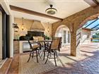 Set within The Lake Club at Lakewood Ranch, this home offers thoughtfully designed indoor–outdoor living, introduced by a gated courtyard entry, paver drive, paver walkways, landscaped grounds, exterior lanterns, and a landscaped front island. Travertine flooring spans the main living areas, with engineered wood floors throughout all bedrooms. A glass front door opens to a foyer with grasscloth wallcovering, while center-pocketing impact-rated sliders connect the great room directly to the lanai. The great room features plaster-textured walls, crown molding, brick archways, soaring 18-foot ceilings with exposed beams, abundant natural light, and motorized shades. The kitchen centers around an oversized island with extended breakfast bar seating and includes a Thermador appliance suite with a paneled refrigerator and freezer, a gas cooktop with griddle, double ovens, a warming drawer, a microwave, a paneled Bosch dishwasher, and a U-Line wine cooler. Additional features include granite countertops, a coffee bar, pot filler, decorative backsplash framed by wood and brick, custom pantries, and upgraded lighting, with the dining area positioned nicely between the kitchen and family room, making it ideal for entertaining. The primary wing features French doors to the lanai and is adorned with walls of windows overlooking the pool, fire pit, and lake. Additionally, this primary suite is appointed with crown molding, designer draperies, and motorized blinds. The luxurious bath offers separate granite vanities, a floor-to-ceiling tiled walk-in shower, a sunken soaking tub framed by windows, and a private water closet. The expansive custom closet includes built-ins, a center island with locking drawers, an integrated hamper, and a chandelier. Both guest bedrooms are en-suite. One guest bedroom is equipped with a double-door entry and a custom Murphy bed, and the other offers a built-in closet, granite vanity, and a walk-in shower with ceiling-height tile and a window. Interior features also include a half bath with a brick archway and linen storage, hallway storage, and a laundry room that includes granite counters, ample cabinetry, a sink, a window, and trim detailing. The lanai features a heated saltwater pool and spa with a Pentair heater, paver decking, exposed ceiling beams, dual ceiling fans with lighting, motorized shades, remote-controlled awnings, and brick archways. A linear electric fireplace finished in Crema Marfil marble with built-in bench seating and a gas fire pit overlooking the lake. The outdoor kitchen includes granite countertops, a sink, hood, and complementary brick and Crema Marfil finishes. FGBC-certified for energy efficiency and comfort, this smart home features Icynene spray-foam insulation, LED lighting, tankless gas water heater, whole-house generator, EV charger, whole-house water filtration with reverse osmosis, and Control4 and Sonos whole-home audio. Smart controls manage security, cameras, thermostat, garage doors, motorized blinds, and water heater, while the epoxy-finished garage includes EV and generator hookups. Located in The Lake Club’s maintenance-free section with pool care and landscaping included, residents also enjoy resort-style amenities such as a clubhouse, pool, fitness center, tennis and pickleball courts, dining, social events, and scenic lakes for kayaking and fishing, just minutes from top-rated schools, shopping, dining, and Sarasota’s beaches.