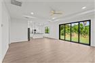 BRAND NEW 2025 HOME WITH A 3-CAR GARAGE, FLEX ROOM, AND MODERN FINISHES THROUGHOUT. House was just completed!! Step inside to 10’ ceilings, wide-plank laminate flooring (no carpet), and a bright open layout that centers around a cook’s kitchen with granite counters, stainless steel appliances, a center island, and plenty of storage. A versatile front flex room works beautifully as a dining room, home office, den, or play space. The split bedroom plan gives the private main suite a quiet corner of the home with a large walk-in closet and a spa-style bath featuring dual sinks and a walk-in shower. Two comfortable guest bedrooms and a full guest bath are set apart for privacy. Everyday ease continues with a generously sized laundry room placed between the foyer and the main suite, impact-rated windows and doors for storm protection and energy efficiency, and an extra-wide driveway leading to the three-car garage. Outdoors, enjoy a rear porch for morning coffee or evening unwinding. City water and septic, underground utilities, and no HOA keep life simple, while a convenient location near Tamiami Trail puts shops, dining, parks, and everyday services within easy reach. This property would make a great annual rental!!HURRICANE IMPACT WINDOWS THROUGHOUT!! We have two completed identical homes that already closed, one that is under contract, and this one that is not in a flood zone.