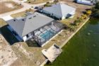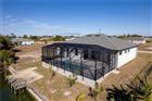 Beautiful New Construction Freshwater front (no Gulf Access) Home with Pool & Screened Lanai! Accepted terms: Cash, Conventional, VA, Lease-to-Own. Homeowners insurance $1, 400-$2, 100/year. Welcome to your new construction dream home in NE Cape Coral’s SWFL paradise. This property is located in an area where no flood insurance is required, offering added peace of mind & potential savings for homeowners. Homeowners insurance $1, 400-$2, 100/year. This beautifully crafted residence offers perfect balance of modern elegance, everyday comfort, and exceptional waterfront lifestyle. Featuring 1703 sq ft w/ 3 spacious bed, 2 full bath & flexible den/office, this home is ideal for those seeking space, style & versatility! Enjoy western exposure along freshwater canal, delivering spectacular sunset views, warm afternoon light & sun-drenched pool & lanai, perfect for evening relaxation & true SWFL waterfront living! Enjoy open-concept design highlighted by nice finishes, abundant natural light & seamless indoor-outdoor living. Full suite kitchen is fully equipped w/ stainless steel appliances, quartz countertops, beautiful island w/ electric cooktop, wall oven, dishwasher, microwave & refrigerator/freezer. Formal dining area overlooks the freshwater canal and private pool, with sliding glass doors opening to the screened lanai, perfect for entertaining or relaxing! Outdoors, a cantilever concrete dock invites fishing, kayaking, or jet skiing from your own backyard! The screened-in pool and lanai offer a private, low-maintenance outdoor retreat—ideal for year-round swimming, entertaining, and enjoying the Florida lifestyle with added comfort and protection. The primary suite offers lanai access, his-and-her walk-in closets, and a spa-style bath with dual sinks, soaking tub, and walk-in shower. A split floor plan provides privacy for guests, with a hallway bath that also serves as a pool bath. Tile flooring throughout enhances the home with a clean, modern look while offering durability, easy maintenance, and a cool, comfortable feel ideal for Florida living. This home places you at the NE upper corner of Cape Coral with quick access to I-41, enjoy easy day trips north toward Port Charlotte, Venice, Nokomis, and Sarasota, or south to world-class dining, shopping, and culture in Fort Myers, Naples, Marco Island. Spend weekends exploring pristine beaches like Boca Grande, Lovers Key State Park, Sanibel (world's capital of shelling!) or sunset strolls at Fishermen's Village in Punta Gorda. Outdoor enthusiasts will appreciate nearby parks, golf courses, nature preserves, and year-round recreation, while travelers enjoy convenient access to SWFL International Airport and Punta Gorda Airport, making regional and national travel effortless. Whether you’re hosting poolside gatherings, enjoying peaceful canal views, or embracing the coastal Florida lifestyle, this home delivers comfort, convenience, and everyday Florida-style living. Schedule your private showing today!