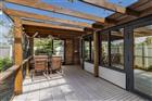 One or more photo(s) has been virtually staged. This updated villa in the 55+ Curry Cove community is perfect for carefree Florida living. It has 2 bedrooms, 2 bathrooms, and a covered carport. The home features an enclosed front porch, Corian countertops in the kitchen and bathrooms, stainless steel appliances, and wood flooring throughout the main living areas. The open layout with cathedral ceilings connects the kitchen, dining, and living rooms, giving it a spacious feel. The master bedroom has its own bathroom with a walk-in shower and a private entrance to the bonus room The bonus room adds extra space and includes a storage closet with washer and dryer. Enjoy your private, fenced patio with stylish flooring—a great place to enjoy your morning coffee or for entertaining guests on a temperate evening. With a whole house water filtration system, recent updates include a new AC in 2022 and a new hot water heater in 2025. Curry Cove offers a heated community pool and parking for RVs and boats. Its location is perfect for those who want to enjoy all the area offers Gulf beaches, downtown Venice, and a wide variety of dining and shopping venues.