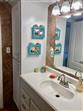 This is an extremely nice spacious second floor three bedroom-two bath turnkey furnished condo located in the 55+ community of Timber Creek. The condo has been updated with porcelain tile floors through out and a beautifully remodeled kitchen. The kitchen features Granite countertops, white cabinets, stainless steel appliances, wine cooler and pantry with slide out drawers - and lots of counter space! The kitchen also has recessed ceiling with can lighting and ceiling fan. The master bedroom is very large, 20x11, and the master bathroom has been updated with walk-in shower, dual sinks and a large walk-in closet. There are two other bedrooms and an updated second bath - one bedroom has a walk-in closet. There is large glass/screen enclosed lanai, 396 square feet, with storage closet housing a full size washer and dryer. Very quite setting, located at the back of the community and across from one of the greens and fairway. There is an elevator in the building. Carport. Roof new in 2023. The community has a clubhouse with two kitchens, library, billiard room, gathering room and exercise room. There is a heated pool and spa, tennis court, pickleball court and shuffleboard. Plus there is a 9 hole par 3 golf course. The complex is close to restaurants, groceries and shopping and about 5 miles to the beach.