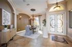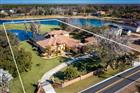 This exquisite lakefront estate masterfully blends elegant living with the tranquility of nature. Spanning almost three acres, with over 200 feet of pristine Lake Breckenridge frontage, the property offers kayaking, jet skiing and boating. The electronically gated entrance introduces a meticulously landscaped realm, featuring a serene pond with a captivating, lighted fountain and abundant space for bespoke additions like a private dock or fun sport courts. Within, discover a residence of refined living that exemplifies the current design preference for modern Tuscan architecture, a style that balances the warm finishes of rustic charm with contemporary sophistication. Interior finishes include crown molding, attractive engineered wood flooring, and large-format, stone-look tile. The gourmet kitchen, a culinary enthusiast's delight, is appointed with lustrous quartz countertops and backsplash, custom rich wood cabinetry with integrated pullouts, an expansive center island, a dedicated wine bar, high-end appliances, and a gas cooktop. All four generously proportioned bedrooms are thoughtfully on the main level. Secondary bedrooms offer charming window seats, while a dedicated children’s lounge provides integrated homework centers. A versatile first-floor bonus room, commanding breathtaking lake views, presents the opportunity for a fifth bedroom or an independent in-law suite complete with a private entry, sitting room and en-suite bath. The lavish main primary suite features a private sitting room with panoramic views of the pond and lake, alongside a spa-inspired bath boasting a sumptuous soaking tub, dual vanities, and an expansive walk-in closet with custom built-ins and a central island dresser. A distinguished home office or library offers bespoke wood built-ins and rich wood flooring. Ascend to the upper level to an entertainer's dream, featuring a billiards room with a wet bar, refrigerator and microwave. Adjacent, a state-of-the-art media/theater room offers an immersive experience with a large screen, premium media equipment and stadium seating. A screened upstairs balcony provides an idyllic setting for stargazing or serene contemplation of the picturesque pond and lake. The outdoor sanctuary redefines resort-style living with an expansive 3, 000-square-foot lanai designed for grand entertaining. It features a summer kitchen with a grill, refrigerator, and outdoor gas fireplace, an 8-foot-deep heated pool with a luxurious Pebble-Tec finish and heated spa. Further enhancing the grounds with full-property sprinkler irrigation and professional landscaping with LED lighting. Automotive enthusiasts will appreciate the six-car garage capacity offering extended-size garage doors and a 50-amp electric vehicle charger. For paramount security and efficiency, the estate is equipped with impact-resistant PGT and Simonton doors and windows, engineered to withstand winds of up to 200 mph. A whole-house 38-kilowatt Generac generator, powered by a 1, 000-gallon buried propane tank, ensures uninterrupted comfort. Energy efficiency is further optimized by 80 LG solar panels and LED lighting throughout the interior. Advanced technology and security provisions include a custom 13-camera video surveillance system with mobile access, a comprehensive whole-house sound system, and sophisticated water purification and softening systems. Don’t miss out on this captivating residence.