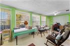 This home has an outstanding location situated on a corner lot with a spacious yard under the grand Royal Poinciana tree all maintained by the association. Enjoy gorgeous sunset views with the gulf breezes coming from Palma Sola bay a few blocks away. Entering the home, notice the easy flow from the updated kitchen with a breakfast nook to the living area, including a formal dining area and end up in the bright and cheerful sunroom where enjoying morning coffee or a favorite evening beverage is a must. The large primary suite sits far away from the living area for privacy and includes an en-suite bath with updated walk-in shower. There is a sizable second bedroom and bath with a tub. The laundry/mud room has lots of space for storage or simple laundry tasks and the previous owner installed a clever storage area to use as your “basement”. Have the peace of mind that IMPACT WINDOWS are installed and that you are located in FLOOD ZONE X. Village Green offers comfortable maintenance free living with a swimming pool, located behind the home on the “green”. A few minutes’ drive can get you to Bradenton Beach on Cortez or Anna Maria Island via Manatee Avenue. Blake Medical Center is close by and there is access to shopping galore. Sarasota, Tampa and St. Pete Airports are all a short distance away.