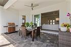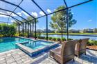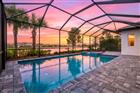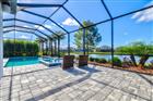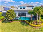 Experience elevated lakefront living in the gated community of Rivo Lakes. Built by MI Homes, this Reflection model offers five bedrooms, three and a half bathrooms, and a three car garage across a thoughtful two level layout designed for flexibility and comfort. From the moment you enter, natural light and soaring ceilings set the tone. Tray ceilings in the great room, dining area, and primary suite add architectural depth, while upgraded stone composite LVP flooring provides durability with a refined look. Custom interior paint and whole house plantation shutters give the home a finished, intentional feel throughout. The kitchen is both a statement and a workhorse. Anchored by a massive quartz island, it features GE Café appliances, natural gas cooking, a farmhouse sink, soft close cabinetry, a vent hood, and a walk in pantry. It flows seamlessly into the great room, where hard wired multi zone audio serve everyday living and entertaining. The main level primary suite is a private retreat with a spa style bath that includes a soaking tub, walk in shower, dual vanities, and a generous walk in closet. A separate bedroom wing on the first floor offers two additional bedrooms with large walk in closets and a full bath, creating ideal space for guests or multi generational living. Upstairs, a spacious bonus room, two more bedrooms, and a full bath provide flexible space for a media room, office, gym, or playroom. Outdoor living is where this home truly sets itself apart. The south facing screened lanai captures lake views and beautiful sunsets. Lush tropical landscaping creates privacy and a true retreat feel. The heated PebbleTec saltwater pool and spa are app controlled for effortless enjoyment. Hard wired outdoor speakers and a dedicated Wi Fi access point ensure seamless indoor outdoor living. Major upgrades include impact windows and doors, security cameras, a water softener and filtration system, gutters, a fully built out custom laundry room, a brand new two stage variable speed HVAC system for energy efficiency, and an epoxy finished three car garage floor. Rivo Lakes is known for its low HOA fees, no CDD fees, and peaceful gated setting near Twin Lakes Park. Siesta Key Beach is approximately fifteen minutes away, with convenient access to downtown Sarasota, UTC shopping and dining, golf courses, and top rated schools. This is lakefront living with intention, privacy, and sunset views built into everyday life.