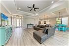 Pool home in Rotonda Lakes. Home features an expansive open great room floor plan with tray ceilings in the great room, dining room and master bedroom. The open kitchen features shaker style cabinets, Quartz countertops, tile backsplash, slate appliances and large island with sink. The kitchen is open to the dining area and great rooms. Bring the outside in with the 16' pocket slider that leads to the large lanai and pool area. Preserve area in the back along with mature landscape adds privacy as you enjoy your pool deck. The master includes 2 closets, dual sinks, walk-in shower and sliders to the large lanai. Home has Solar panels (installed 2024). Other features include, 8 foot doors, 11 foot ceilings, plank tile flooring throughout, crown molding, gutters on front of house, hurricane shutters, 5 panel tall garage door and 13 foot ceiling in garage with hanging storage rack, security system installed and available. Minutes from Gulf Beaches and shopping.