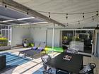Wake up each morning to peaceful golf course views in this beautifully furnished villa overlooking the IMG Golf Course. This nicely updated home offers comfort, style, and a relaxing Florida lifestyle in a highly desirable location. The spacious living room features vaulted ceilings that create an open, airy feel, perfect for relaxing or entertaining. The kitchen is well-appointed with granite countertops, a convenient breakfast bar, and white appliances including a range, refrigerator, dishwasher, and microwave. Just off the kitchen is a comfortable dining area for everyday meals or casual gatherings. The main bedroom includes a king-size bed and an ensuite bath with granite countertops, dual sinks, and a tub/shower combination. The guest bedroom offers a queen-size bed and its own bathroom with granite counters and a walk-in shower, providing privacy and comfort for visitors. One of the highlights of the home is the huge screened patio with tile flooring, where you can enjoy morning coffee or evening sunsets while overlooking the scenic IMG golf course. Conveniently located near shopping and restaurants, and just a short drive from our beautiful Gulf beaches, this furnished villa is the perfect place to enjoy the Florida lifestyle.