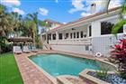 Spacious island living awaits in this beautifully maintained 5-bedroom, 3-bath furnished home on the coveted north end of Siesta Key, just steps from beach access No. 1, Shell Rd, on Big Pass and with convenient access to the Sarasota mainland. Fully gated and walled for privacy, the property is surrounded by lush tropical landscaping and offers the ideal blend of comfort, functionality, and a weekly rental. An oversized 3-car garage and large paver driveway provide plenty of space for vehicles, beach gear, and a golf cart—perfect for enjoying the Siesta Key lifestyle. Adding to its appeal, the home is built above base flood elevation, a valuable feature on Siesta Key. Inside, the large open floor plan is designed for entertaining, with 12-foot ceilings, crown molding, arched openings, and travertine flooring. The spacious kitchen features stainless steel appliances, oak cabinetry, and a breakfast nook overlooking the backyard oasis, while a separate dining area and large living room with a gas fireplace provide plenty of space to gather. French doors off the living room open to a large terrace overlooking the backyard oasis, while a second terrace off the side of the home offers a cozy, private spot to relax. The private main-floor primary suite offers direct terrace access, two walk-in closets, an oversized bedroom, and a luxurious en-suite bath with dual vanities, soaking tub, walk-in shower, and floor-to-ceiling travertine. Two additional large bedrooms and a full bath are also located on the first floor. Upstairs, two generous guest bedrooms, a full bath, and a wet bar with a beverage fridge create an ideal retreat for visitors, while one of the bedrooms opens to a private terrace overlooking the backyard. Additional conveniences include multiple storage closets and a central vacuum system for easy maintenance. The backyard is a true tropical oasis with mature landscaping, a heated saltwater pool with fountain, paver deck, large turf area, outdoor shower, and an exceptional tiki hut bar and outdoor kitchen designed for entertaining, complete with a built-in gas grill, two bar fridges, and porcelain countertops. An additional fenced side yard provides a great space for dogs to roam. Ideally located, this property is just moments from world-renowned Siesta Key Beach and a short drive to downtown Sarasota’s celebrated restaurants, shopping, and cultural attractions. With three terraces, abundant indoor-outdoor living, strong weekly rental history, and a prime north Siesta Key location, this is an outstanding opportunity to enjoy the best of island living.