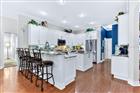 Stunning 3151 square-foot waterfront home in a gated community featuring five bedrooms, three full baths, and an oversize three car garage. This beautifully maintained home offers high volume ceilings, crown molding, and warm hardwood floors throughout. The upgraded gourmet kitchen includes 42 inch soft clothes, cabinetry, granite countertops, And enlarged island, coffee bar, wine, fridge, gas range, and stainless steel appliances. The flexible floor plan includes a rear bedroom with adjacent cabana bath and pocket door for privacy, two bedrooms connected by a Jack and Jill bath, and a fifth bedroom/bonus room upstairs. The spacious primary suite features a sitting area, two walk-in closets and a luxurious en suite bath with walk-in shower, the family room offers a cozy wood-burning fireplace with a white mantle. Three sets of sliding glass doors from the primary suite, living room, and family room open to an oversize patio overlooking the water– perfect for enjoying outdoor living. Major upgrades within the past 10 years, include roof, dual AC units, energy, efficient windows, and sliding doors, kitchen dates, custom, plantation, shutters, tankless water heater, gutter, guards, and fresh neutral paint. All appliances, including washer, dryer, additional refrigerator in the garage. Community amenities include tennis courts, Pickleball courts, playground, private park, and boat ramp with lake access. Convenient to 417, UCF, Winter Park, shopping, dining, Publix, Move in ready!