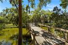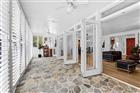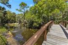 Welcome to this beautifully updated ground-floor condo in the quiet, wooded community of Crooked Creek—locally referred to as “the hidden gem” of Sarasota. Surrounded by the 72-acre Red Bug Slough nature preserve, with private community access, this 2-bedroom, 2-bath residence offers the perfect blend of serenity and convenience, just minutes from everything Sarasota has to offer. Crooked Creek’s original two buildings, designed by Sarasota School of Architecture Modernist master architect Tim Siebert, FAIA, are constructed of CMU with stucco and reflect the clean, timeless lines of this iconic design movement. Inside, the home showcases a contemporary coastal aesthetic filled with natural light and thoughtful design. Hardwood floors flow throughout the main living spaces, complemented by stone flooring, built-ins, detailed molding, and plantation shutters, creating a refined and cohesive look. Four sets of French doors open to a stone-floored Florida room, allowing sunlight to pour into the home while offering peaceful views of the surrounding wooded landscape. Just off the kitchen, a private patio provides an additional outdoor space ideal for morning coffee or quiet relaxation. The kitchen features a recessed ceiling, granite countertops, stainless steel appliances, and a stone backsplash—blending both style and functionality. The spacious primary suite easily accommodates a sitting area or workspace and includes a beautifully appointed ensuite bath with double vanity sinks, stone basins and backsplash, tiled walls and floors, and a soaking tub with an overhead rainfall shower. The great room offers custom built-in shelving and a cozy electric fireplace, creating a warm and inviting space for relaxing or entertaining. This home also includes a security system for added peace of mind. Residents enjoy a range of community amenities including a pool, pool house with kitchen, gazebo, grills, tennis and pickleball courts, carport, storage room, and charming pedestrian bridge—all set within a lush, park-like environment. Located in a peaceful natural environment yet just minutes from world-renowned Siesta Key Beach, as well as shopping, dining, and entertainment, this Crooked Creek condo delivers the very best of Sarasota living.