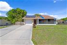Welcome to this charming Florida retreat, where comfort, efficiency, and effortless outdoor living come together beautifully. This well-maintained home features a bright, open-concept layout filled with natural light, creating a warm and inviting atmosphere from the moment you step inside. The spacious living area seamlessly connects to the kitchen, offering ample cabinetry and generous counter space perfect for both everyday living and entertaining. The home includes two comfortable bedrooms, highlighted by a private primary suite with an en-suite bath for added convenience and relaxation. Step outside to your own private oasis, complete with a screened-in lanai and sparkling pool ideal for unwinding or hosting guests year-round. The fenced backyard provides plenty of space for pets, play, or gardening, along with a convenient storage shed. Recent upgrades add even more value and peace of mind, including a new roof (2023) and impact-resistant storm windows (2018). Additional features include solar panels for enhanced energy efficiency, a one-car garage, and a quiet residential setting surrounded by mature trees while still being just minutes from shopping, dining, and Florida’s stunning Gulf Coast beaches.