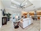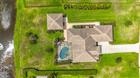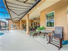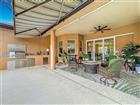 Welcome to this beautiful, over-the-top custom home situated on just over a half-acre of meticulously maintained property. This exceptional 3-bedroom, 3-bath residence offers luxury, privacy, and thoughtful design at every turn. Step through the custom double front doors into an expansive great room featuring elegant tray ceilings and an open-concept layout that seamlessly connects the living area, gourmet kitchen, breakfast nook, and formal dining room—perfect for both everyday living and entertaining. Designed with both style and peace of mind, all windows and doors are hurricane-rated. The gourmet kitchen serves as the heart of the home, showcasing premium appliances, custom cabinetry, and abundant granite counter space. A second refrigerator in the laundry room adds extra convenience, along with upgraded shelving throughout the laundry, pantry, and office spaces. The home also features a whole-house water filtration system with reverse osmosis in the kitchen. The luxurious primary suite offers a spa-like retreat with a large soaking tub, walk-in shower, and heated towel bars, while all bathrooms include walk-in showers and upscale finishes. Each bedroom is enhanced with custom closets by design, and upgraded soundproofing in the walls ensures added privacy. Beautiful upgraded tile flooring flows throughout the home. Enjoy true indoor-outdoor living with triple sliding glass doors that open the great room to the lanai, creating an expansive entertaining space. The outdoor area is equally impressive, featuring a fully equipped outdoor kitchen with custom cover, a propane firepit with stone and granite accents, and a heated pool and spa enclosed with a no-see-um screen. The backyard is enhanced with professional landscape lighting for a stunning evening ambiance. Car enthusiasts and hobbyists will appreciate the air-conditioned and heated 3+ car garage with attic storage, as well as a separate, climate-controlled 676 sq. ft. workshop/RV garage—perfect for additional vehicles, storage, or projects. With two attic storage spaces and countless high-end upgrades throughout, this is truly a one-of-a-kind custom property offering luxury living at its finest.