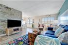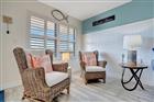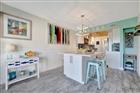 This beautifully renovated, turn-key furnished condo is a hidden oasis in the heart of Bradenton, with location as a standout feature. It offers easy access to Sarasota, Anna Maria Island, Gulf beaches, Bradenton’s keys, I-75, and downtown. This spacious 1-bedroom, 1.5-bath home, just under 1, 000 square feet, is filled with high-end upgrades and comes completely furnished, including all Coastal décor, linens, and kitchenware—making it truly move-in ready. Quality tile plank flooring flows throughout, enhancing the clean, modern design. The extended kitchen is a showstopper, featuring an expansive quartz-topped island that blends style and function—perfect for meal prep, casual dining, or entertaining. Additional upgrades include a designer backsplash, soft-close drawers, raised soffits, and stainless steel appliances, offering both elegance and practicality. Stylish plantation shutters on the front and back windows, along with center-opening textured vertical blinds, add to the long list of extras. Upgraded lighting, outlets, and fans elevate the contemporary ambiance, while a front-door sliding screen allows for refreshing cross breezes. This top-floor unit with no neighbors above enjoys peaceful living with an abundance of natural light and serene water views, accompanied by the soothing sounds of a fountain. The lanai, finished with matching wood plank tile, overlooks lush landscaping, creating a peaceful retreat. Situated in Woodpark at DeSoto Square, a gated 55+ community, residents can enjoy amenities like a heated pool, spa, and scenic walking paths around the ponds. The building is pet-friendly and includes designated parking plus a storage space for beach gear. With its unbeatable location and tasteful Coastal-inspired design, this home is the ideal Florida getaway, close to Sarasota’s cultural offerings, Bradenton’s Riverwalk, and Tampa’s vibrant attractions.