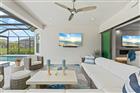 Under contract-accepting backup offers. This exceptional Pallazzio floor plan in the resort-style community of Esplanade at Azario offers a rare non-golf, water-view setting with 3 bedrooms, 3 full baths, and a bonus room ideal for a home office or guest space. Tucked toward the end of a quiet cul-de-sac with tranquil water views, this open-concept residence flows effortlessly from room to room. The chef's kitchen impresses with quartz countertops, neutral, glass-tile backsplash, GE Café appliances, natural gas range, and built-in water filtration, while the great room elevates everyday living with a stacked-stone fireplace, built-in mantel, Sonos speaker system, and updated light fixtures throughout. The primary suite is a true retreat, featuring a tray ceiling, spa-quality bath with oversized shower, and a custom-finished walk-in closet. Step outside to a private oasis with an oversized heated saltwater pool and spa, and a fully appointed summer kitchen with stacked-stone wall — ideal for year-round entertaining. Peace-of-mind upgrades include a whole-home natural gas generator, impact-resistant windows, rain gutters, smart-home technology, and a custom security system. No golf membership with this home, so lower monthly dues, yet residents still enjoy full access to Azario's world-class amenities, including resort pool and Bahama Bar, fitness and wellness center, spa, tennis, pickleball, culinary center, and an active country club social calendar. Move-in ready and meticulously maintained — a true blend of elegance, privacy, and effortless Florida living.