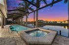 Welcome to 4012 SW 29th Ave, a beautifully renovated Gulf Access pool home offering spectacular views of multiple extra wide intersecting canal basins in the highly sought-after Surfside neighborhood. With 112 feet of waterfront and western exposure, offering breathtaking sunsets, this home boasts one of the most desirable water settings in Cape Coral. Although built in 2005, it lives like a new luxury home thanks to extensive 2023–2024 updates, including a standing-seam metal roof, picture-window pool cage, new flooring throughout, fully remodeled bathrooms, and a stunning chef’s kitchen with quartz waterfall counters, Café appliances, and a walk-in butler’s pantry. The great room features tall volume ceilings and French doors opening to a large covered lanai overlooking the heated 38-foot lap pool and spa. The primary suite offers tray ceilings, French doors to the lanai, two closets, and a spa-style bath with a freestanding tub and a glass-walled shower. The main level includes two additional guest suites, each with either direct bath access or a private bath, plus a fourth bedroom currently used as an office. Upstairs, a spacious loft with a full bath, walk-in closet, and balcony with commanding water views functions perfectly as a media room, office, or optional fifth bedroom. A dedicated pool bath and an updated laundry room complete the layout. This home blends the quality of an established neighborhood with the finishes and design of new construction. With impact windows and doors, elegant materials throughout, and great boating access with just one bridge and no lock to open water, this is an ideal waterfront retreat for year-round or seasonal living.