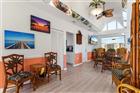 TOP-FLOOR END UNIT IN POINTS WEST W/FULL HARBOR VIEW, PRIVATE GARAGE & STUNNING SUNSETS - Enjoy front-row seats to vibrant sunsets, boating activity, and wildlife from this updated, 3 bed/2 bath, top-floor end-unit condo in Points West. With panoramic views stretching across Charlotte Harbor, this waterfront residence offers nearly 1, 600 sq ft of open-concept living space designed for effortless indoor/outdoor living. Inside, large windows and sliding glass doors frame the spectacular water views from nearly every room while also allowing in tons of natural light. The enclosed balcony extends your living space outdoors — perfect for sipping evening cocktails while watching boats pass or dolphins and manatees play just below. Western rear exposure ensures dramatic sunset skies year-round. The centrally located kitchen is beautifully updated with gorgeous quartz counters, stainless steel appliances, soft-close cabinetry, and an angled breakfast bar ideal for casual dining. The great room flows easily into the dining area and out to the lanai, creating a seamless entertaining space. Tile flooring runs throughout the main living areas, lanai, and baths while all three bedrooms feature new carpet. The spacious master suite boasts a large California-style walk-in closet and an en-suite bath w/dual sinks and a tiled corner shower. Two guest bedrooms offer versatility for hosting visitors or working from home. The interior laundry room includes a full-size washer/dryer for added convenience. Points West is a tight-knit, predominantly owner-occupied community with outstanding amenities including a heated in-ground pool, tennis court, clubhouse, and kayak launch. Set off directly from the backyard or enjoy a peaceful walk along the miles of scenic sidewalks connecting you to the rest of Punta Gorda Isles. The condo includes a PRIVATE GARAGE in the under-building parking area — a rare perk for condo living. Located just minutes from the Isles Yacht Club, Fishermen’s Village, and historic downtown Punta Gorda, this is your opportunity to embrace the best of the Florida waterfront lifestyle. Brand new, extended walking pier into Harbor to be added in 2026 - already designed and paid for! Schedule your showing today. This view is even better in person!