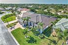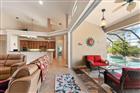 Enjoy the best of both worlds — the beauty of a custom estate home with professionally maintained landscaping!. Nestled among other custom homes in the highly sought-after Linkside community, this spacious home offers effortless living, a desirable open floor plan, and an impressive list of recent updates. From the curb, you’ll be drawn in by the inviting entry, new roof, and freshly painted exterior. Inside, soaring ceilings and a light-filled great room create an open, elegant atmosphere — and the beautiful furnishings are included, making this home truly move-in ready! The central living area features a cozy fireplace and flows seamlessly into the chef’s kitchen, complete with an expansive breakfast bar, granite countertops, tumbled tile backsplash, 42” hardwood cabinetry, and stainless-steel appliances, including a brand-new wall oven and microwave combo. A spacious dining area easily accommodates large gatherings, while the adjacent office/den with custom built-ins is perfect for working from home or additional space for guests. The thoughtfully designed split floor plan ensures privacy for all. The guest wing offers two generously sized bedrooms with king beds, large closets, and newer carpet, along with a shared bath featuring dual vanities, a walk-in shower, and direct access to the pool. On the opposite side of the home, the owner’s suite is a true retreat, featuring a peaceful sitting area and French doors leading directly to the lanai. Two walk-in closets lead to a luxurious ensuite bath with dual vanities, a soaking tub, and a walk-in shower. Step outside to your private outdoor oasis. The covered lanai with summer kitchen — featuring a new grill, sink, and storage — overlooks a sparkling pool with a dramatic stone waterfall and western exposure for unforgettable sunset views. Lush tropical landscaping behind the pool enhances both privacy and visual appeal. An oversized 2½-car garage with epoxy flooring offers room for two vehicles plus a golf cart, with organized storage closets along the back wall. Additional upgrades include a brand-new whole-house water softening system, new pool heater, new AC system, new 80-gallon water heater, storm shutters, and a generator-ready breaker panel for added peace of mind. Enjoy resort-style living in this premier waterfront gated community offering a fitness center, tennis and pickleball complex, 27-hole executive golf course, activity club, yacht club, Freedom Boat Club, and two on-site restaurants — all easily accessible by golf cart. With the fastest access to open water in Southwest Florida, you can spend your days boating and your evenings enjoying everything this vibrant community has to offer. Beautifully maintained and fully furnished, this exceptional home is ready for you to move in and start living the Florida lifestyle out of the cold!