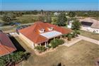 CUSTOM HOME W/ICF CONSTRUCTION, NEW 2025 METAL ROOF & SUNSET GOLF COURSE VIEWS Located in The Habitat, a deed-restricted community overlooking the Sunny Breeze Golf Course, this custom 3 bed/2 bath home blends energy-efficient construction with a timeless design. Built with ICF (Insulated Concrete Forms) for superior durability, insulation, and storm protection, the residence offers 2, 598 sq ft under air and over 5, 000 sq ft total—providing generous living spaces set on over half an acre. A long paver drive leads to the columned front porch framed by mature palms. Inside, the home opens to a bright, elegant layout with porcelain tile flooring, double tray ceilings with accent lighting, crown molding, arched doorways, and wide baseboards throughout the main living areas. Walls of sliding glass doors draw your eye out to the lanai and the sweeping golf course and pond views beyond. The spacious kitchen sits at the heart of the home with warm wood cabinetry w/soft close features, granite counters, stainless steel appliances, pendant lighting, and breakfast bar seating. A breakfast nook with large aquarium-style window overlooks the lanai and golf course views. The split-bedroom design enhances privacy. The master suite features a tray ceiling, French doors to the lanai, and tranquil views. The spa-inspired bath includes granite counters, abundant cabinetry, a jetted soaking tub, and an oversized walk-in shower with multiple shower heads and a glass block wall. Two guest bedrooms share the opposite wing, both with easy access to the full guest bath. Almost every room in the home opens to the lanai extending the living space outdoors, where a large brick paver deck creates the perfect setting for true Florida-style indoor/outdoor living. The covered seating area, finished with tongue-and-groove–style ceiling panels, provides a comfortable spot to relax throughout the day. The lanai is plumbed for a summer kitchen with water and electric hook-ups already in place, giving you everything needed to create an outdoor cooking space when ready. With its oversized footprint, this area offers plenty of room for dining, lounging, and enjoying the golf course and pond views—plus ample space to add a pool, if desired. Recent updates deliver peace of mind, including a NEW 2025 metal roof, NEW gutters & soffits (2025), fresh exterior paint (2025), and a NEW garage door opener (2025). Additional highlights include an oversized two-car garage w/epoxy floor and a low-fee HOA. The Habitat community enjoys a manicured, tree-lined entrance and boasts underground utilities. This move-in ready home features a quiet, countryside setting yet offers easy access to Punta Gorda, Port Charlotte & Arcadia. Liverpool Park located right down the street, offers boat ramp with quick access to the Peace River, Charlotte Harbor and the Gulf. A rare opportunity to enjoy energy-efficient construction, modern updates, and a premium golf course location. Make an appointment today.