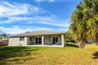 Beautiful WATERFRONT LIKE NEW home ready to move in! Great curb appeal with added palm trees and fencing along the side for privacy, stone accents, recessed lighting in soffits and fresh mulch. Once inside your double door entry you will immediately notice the bright and airy open concept floor plan with split bedrooms, high ceilings, crown molding, coffered ceiling living room, nice tiled floors and 8 foot sliders showcasing your Florida water view. Kitchen is perfect for entertaining to main living areas with a generous sized island, white real wood cabinetry, and stainless steel appliances. Inside laundry room with washer and dryer, laundry tub and shelving. Primary bedroom has tray ceilings with built in dimmable lighting, two walk in closets, dual vanities with granite countertops and an impressive tiled shower. The 33x9 covered over sized lanai spans almost the length of the entire home where you can enjoy your morning coffee with sounds of nature and lets not forget your water view! A pool could easily be added and the seller has already started the process with a copy of plans available if interested. FURNITURE IS NEGOTIABLE, BRAND NEW WITH TAGS STILL ON. The lot next door cannot be built on and the location is ideal just minutes from year-round enjoyment of boating, fishing, golfing, beaches, dining, parks, public shopping and medical care. A must see, schedule an appointment today!
