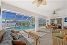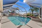 LAKEFRONT GULF ACCESS home on Thunderbird Lake with SOUTHERN EXPOSURE, NEW 2023 ROOF, IMPACT windows/doors, updated dock, and 10, 000 LB COVERED LIFT. Welcome to 626 Cape Coral Pkwy W, a beautiful lakefront Gulf-access home with southern exposure on Thunderbird Lake, one of Cape Coral’s sought-after “8 Lakes.” Enjoy long, wide-water views from the pool, lanai, and even from inside the home. Sunsets here are truly stunning. The outdoor living area features a HEATED SALTWATER pool, large covered lanai, screened picture-window enclosure, and a lakeside gazebo, encore exterior lighting, creating the perfect place to relax and entertain. A paver circle driveway and walkways surround the home, complemented by mature tropical landscaping and extensive landscape lighting. Boaters will appreciate the composite dock with a 10, 000 lb covered lift, all new in 2023 along with the roof, impact windows and doors, and paver hardscape. THIS HOME HAS NOT FLOODED IN ANY RECENT STORM. Inside, the home offers vaulted ceilings, a spacious living room with built-in cabinetry and an electric fireplace, and a huge pocketing slider opening to the pool. The large eat-in kitchen includes stainless steel appliances, granite countertops, an island, breakfast bar, pantry, and plenty of cabinet space. The master suite features crown molding, two walk-in closets, lanai access, and a bath with dual sinks and a tiled shower. The guest bath also serves as a convenient pool bath. You are a short boat ride to restaurants, beaches and the Gulf. By car, you are located close to downtown Cape Coral, Tarpon Point, Cape Harbour, shopping, and restaurants. This home delivers the best of waterfront living in a prime SW Cape location.