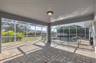 Under contract-accepting backup offers. Beautifully maintained 4-bedroom, 3-bathroom pool home with 2, 455 square feet of living space, ideally located on a quiet cul-de-sac in the highly sought-after, deed-restricted Deep Creek community. This single-story residence offers excellent curb appeal with a modern exterior, fresh neutral paint, and a welcoming covered entry with paver flooring. Mature landscaping, including palm trees and manicured shrubs, enhances the home’s contemporary aesthetic, and a wide driveway leads to a two-car garage for ample parking and storage. Step inside to a bright, open-concept entryway filled with natural light and elegant fixtures. The decorative glass front door opens into living and dining areas with rich wood-look flooring. The formal dining room is highlighted by a modern chandelier and large windows with plantation shutters, while the spacious living room features custom built-in cabinetry, a stylish ceiling fan, and clean architectural lines. This central space flows seamlessly into the kitchen and family room, creating an ideal layout for everyday living and entertaining. The kitchen combines style and functionality with stainless steel appliances, resurfaced white cabinetry with glass-front accents, pantry closet, a sleek subway tile backsplash, and granite countertops. A raised bar overlooks the family room, making it perfect for conversation while entertaining. The open layout ensures the kitchen connects naturally to the main living areas. The primary bedroom is a serene retreat featuring a custom accent wall, warm wood-look flooring, and a modern ceiling fan. A custom walk-through dressing closet connects two primary bathrooms, one with a walk-in shower and the other with a soaking tub, offering both convenience and privacy. Two guest bedrooms feature closets with custom shelving and plush carpeting, while a fourth bedroom with French doors provides a versatile space for a bedroom, office, or sitting room. These rooms share an updated full guest bathroom. Outdoor living shines with a screened lanai and heated pool. A large, covered area offers shade and comfort, while the expansive paver pool deck provides space for sunbathing, relaxing, and entertaining, all within a fenced backyard for privacy and security. Additional features include plantation shutters, recessed lighting, a large laundry room with storage, city water and sewer, A/C (2017), water heater (2022), new roof (2023), closet organizers in all closets, shiplap walls, and more. Located just minutes from golf, shopping, dining, entertainment, I-75, medical facilities, and waterfront parks, this home perfectly combines comfort, style, and convenience—ready for family living or seasonal guests. **PLEASE ENJOY THE 3D INTERACTIVE VIRTUAL TOUR ASSOCIATED WITH THIS LISTING**