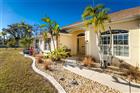 Impressive and spacious 4 Bedroom, 3 Bathroom home with attached two car Garage located in desirable DEEP CREEK. This light and bright home offers beautiful design features throughout. There is a huge Great Room, separate Dining Room, well appointed Kitchen and Inside Laundry with front loading washer and dryer and cabinets. The Kitchen features wood cabinets, stainless appliances, stone counters, breakfast bar that seats six and large dining area. Appliances include French door refrigerator, oven/range, microwave and dishwasher. The Master Bedroom suite is enormous and offers walk in closets and private bathroom with dual sinks and walk in shower. There are three additional generous sized bedrooms and both guest bathrooms have tub/shower combinations. Your living space extends to the screened lanai with inground pool, large covered area and plenty of deck for sunbathing. Other features include hurricane shutters, front door with sidelights and transom window, wood look tile throughout, cathedral ceilings, plant shelves in Great Room, walk in pantry. This home is NOT in a flood zone. Utilities are county water and sewer. This home is conveniently located minutes from Golf, shopping, dining, entertainment and I-75. Short drive to medical care, waterfront parks and boat ramps. This home is perfect for a family or those expecting lots of winter visitors.