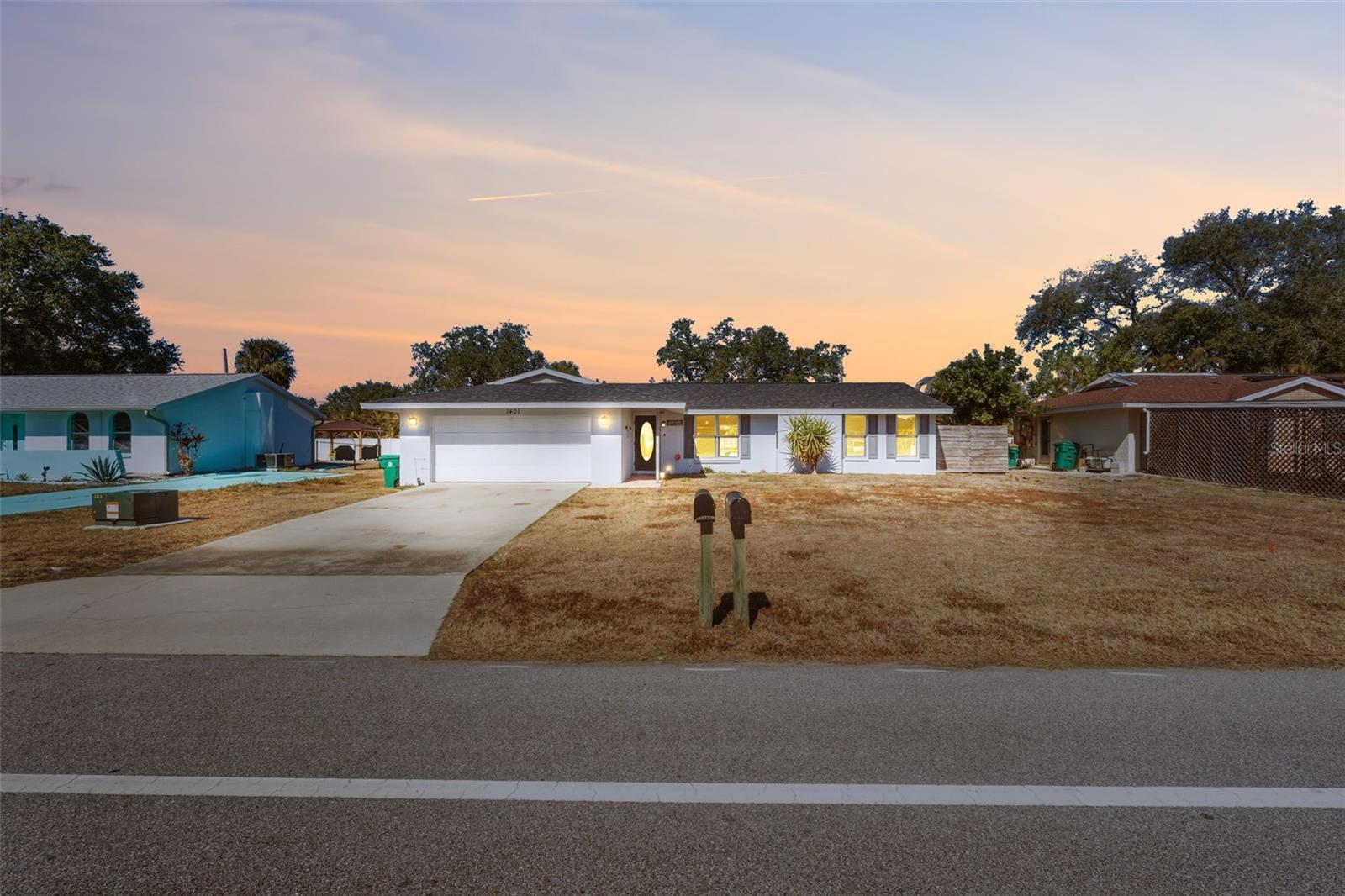 Under contract-accepting backup offers. This beautiful MOVE IN READY modern farmhouse boasts 1, 521 square feet of living space. NO FLOOD INSURANCE REQUIRED, ZONED X. NEWLY RENOVATED in 2024. 2023 ROOF, 2018 A/C , luxury vinyl plank flooring in the living areas, with Nike padding under the carpeted bedrooms. Additionally, the home sits on a 10, 000 sqft lot with a large backyard and a 6' wood privacy fence. The kitchen's large center island has plenty of room for bar stools which is perfect for entertaining since it is nice and open with the dining and living room spaces. The kitchen has ample cabinets and a pantry closet. No clutter will be able to stand a chance against the storage this kitchen has! In the renovation butcher block counters were installed as well as Samsung appliances. Spacious primary bedroom with walk-in closet, primary bathroom has a double vanity and a built-in seat in the shower. This home has many windows that let in a lot of natural sunlight. Large guest bath with floating cabinets and two windows. The INDOOR laundry off the great room includes a front load washer and dryer. The screened lanai with included TV is perfect for that Florida lifestyle of enjoying your piece of paradise. Recessed lights in the kitchen creates a luxurious ambiance. Do not forget the two-car garage that includes a French door fridge. It is close to schools but far enough away from the school traffic. A beautiful blank slate that is move in ready for you to put your personal touch on.