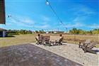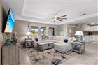 Modern efficiency meets premier outdoor living in this 2022-built Lehigh Acres home. Situated on an oversized lot, this 4-bedroom, 3-bathroom home offers 2, 185 square feet of thoughtfully designed living space. Make a grand entrance through the elegant double glass door entryway into an airy, open layout featuring impact-resistant windows and doors throughout for ultimate storm safety and peace of mind. The interior is complemented by modern window treatments, ceiling fans and walk-in closets in every room. Tech-forward features include a pre-installed security camera system, Ring doorbell, and a solar panel system. The two-car garage functions as a complete workshop with a built-in workbench, overhead racks, and extensive shelving. Transition outside to a true backyard oasis featuring a screened-in lanai that leads to a 500-square-foot entertainer’s patio. This custom outdoor space is anchored by a firepit and unique tiered stadium seating, perfect for hosting gatherings. For added convenience, the exterior also features a paved walkway to a fenced garbage pad area. With low-maintenance landscaping and the structural benefits of newer construction, this home offers an incredible lifestyle in a peaceful, low-traffic setting.