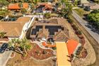 Welcome to this well-maintained 2-bedroom, 2-bathroom home with a 2-car garage, situated on a corner lot. The property features attractive mulch and hardscape landscaping with decorative curbing, additional side parking perfect for a boat or RV, and a welcoming double-door entry that enhances its curb appeal. Offering 1, 704 square feet under air, this home features high ceilings with recessed lighting, a split-bedroom floor plan, and assumable leased solar panels, providing energy efficiency and long-term savings. The kitchen offers a breakfast bar, ample cabinetry, a pantry closet, and a breakfast nook with direct access to the extended lanai, ideal for seamless indoor-outdoor living. Adjacent living areas include a separate living room, formal dining room, and family room, allowing for flexible use and entertaining. The primary suite features carpeted flooring, pocket sliders to the lanai, a spacious walk-in closet, and an ensuite bathroom with dual sinks, a walk-in shower, and a linen closet. The guest bedroom includes carpeted flooring and a walk-in closet. The guest bathroom offers a single vanity, tub/shower combination, linen closet, and convenient lanai access, making it ideal for guests. Step outside to YOUR extended lanai perfect place for entertaining family and friends. Additional features include a laundry room with utility sink and cabinetry, extended lanai, shed for extra storage, and city water. Updates & Improvements: Interior & exterior paint (2025), Solar panels (2023), Roof (2023), A/C (2023), Hot water heater (2021), Garage door (2021), Impact windows (2017). This home offers peace of mind with major updates already completed and plenty of space to enjoy Florida living. No HOA or deed restrictions!! Conveniently located close to I 75, restaurants, shopping, beaches, and more. Ask to see this one first...make YOUR appointment today!!!
