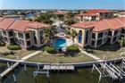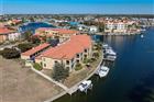 WATERFRONT CONDO IN PUNTA GORDA ISLES WITH DEEDED DOCK - Discover refined coastal living in this beautifully maintained, FULLY FURNISHED/TURNKEY, first-floor waterfront condo in Grand Bay where you'll find a boating-friendly lifestyle with sailboat access to Charlotte Harbor and a wide canal basin view right outside your door. Complex is located at the end of a quiet cul-de-sac in the heart of Punta Gorda Isles. With relaxing canal views and thoughtful upgrades, the unit boasts move-in ready comfort, style, and—most importantly—long-term financial stability thanks to a fully funded HOA. In a market where many associations face rising insurance costs and underfunded reserves, Grand Bay stands out as a community that has already done the hard work. Inside, the condo features an open layout with 10-foot ceilings, tray ceiling details, crown molding, and 8-foot doors. Diagonal-set ceramic tile runs through the main living areas while the bedrooms have Berber carpeting. Sliding glass doors bring in natural light and connect the great room to the screened lanai extending the living space outdoors. The kitchen is well laid out and functional with raised panel cabinetry, stainless steel appliances, a decorative mosaic tile backsplash, and a breakfast bar accented by pendant lighting. A dining area and closet pantry complete the kitchen. The split-bedroom layout provides privacy for owners and guests. The primary bedroom is generously sized and includes a tray ceiling, water views, walk-out access to the lanai and an en-suite bath with dual sinks, a corner tub, and a separate shower plus an oversized walk-in closet w/custom overhead storage. A full laundry area is located within the unit. The condo is offered turnkey furnished and move-in ready, making it easy to start enjoying the waterfront lifestyle right away, simply bring your clothes and toothbrush and you're home. Step out onto the screened lanai and take in the canal basin view with desirable southeastern exposure—colorful sunrises, bright mornings, comfortable afternoons, and a relaxing backdrop throughout the day. Boaters will appreciate the deeded dock (#22) just steps from the unit, complete with an 8, 000 lb boat lift and an aluminum walk-around platform. Enjoy sailboat access to Charlotte Harbor from your backyard. Unit has impact-resistant doors and windows for peace of mind. A new tile roof was installed in 2024. Additional features include deeded covered parking space and storage unit. Grand Bay is well maintained and financially stable, offering reasonable monthly fees. Association is pet and leasing friendly. Residents enjoy an in-ground, heated pool surrounded by a brick paver deck and BBQ area that overlooks the canal basin—an ideal place to relax or gather after a day on the water. Located just minutes from historic downtown Punta Gorda, Fishermen’s Village, waterfront parks, dining, and shopping, this condo delivers the convenience of condo living paired with a true boating lifestyle. Schedule an appointment today. You won't be disappointed. Pontoon boat on lift at dock #22 is for sale separately/negotiable.