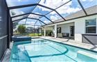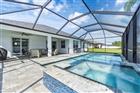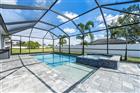 Built in 2022, this custom 3 bedroom plus den, 2 bathroom home offers modern finishes and upgraded outdoor living. The heated saltwater pool, spa, and sunshelf were added in 2023 and can be controlled remotely from your phone. The outdoor area features a screened lanai, partial privacy fencing, a sprinkler system, and a spacious yard with plenty of usable space. The kitchen includes quartz countertops, stainless steel appliances, soft close cabinets, upgraded lighting and fixtures, a waterfall edge island, and a large pantry with custom cabinetry and a built in mini fridge. The refrigerator is connected to a reverse osmosis water system. The den includes an adjustable height, built in desk and provides flexible space for a home office or bonus room. Interior highlights include volume and tray ceilings, 8 foot sliders and interior doors, and abundant recessed lighting throughout. The primary suite features dual sinks and a walk in shower. Impact windows and impact doors provide added protection, and a generator hookup is already installed. Exterior features include a pavered driveway and strong curb appeal. Conveniently located near shopping, dining, and daily amenities. Schedule your private tour today.