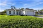 Under contract-accepting backup offers. Brand new construction offering a clean, modern design and comfortable single-story living. This 3-bedroom, 2-bath home features an open floorplan that connects the kitchen, living, and dining areas, creating a bright and functional space for everyday living and entertaining. FLOOD ZONE X with no flood insurance requirements. NO HOA! Freshwater canal-front. Inside, the home is finished with tile flooring throughout, high and vaulted ceilings with specialty details, and abundant natural light. The kitchen includes stone countertops, solid surface finishes, and a full appliance package including range, microwave, refrigerator, and dishwasher. The primary suite offers a private retreat with a walk-in closet and en-suite bath, while the additional bedrooms provide comfortable space for family, guests, or a home office. Impact windows. Complete with a paver driveway. Sliding and French doors open to a covered rear tiled porch overlooking the backyard, offering a great space to relax outdoors or host gatherings. Located on a cleared homesite on a paved street with no HOA fees, this newly built home provides modern finishes and the opportunity to move into a never-lived-in property.