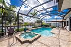 This exceptional, custom-built three bedroom plus den Fero home is situated in one of PGI’s best neighborhoods and has been meticulously updated from the roof to the porcelain floors. The thoughtfully updated exterior provides a current aesthetic with Bahamian awnings over new impact windows and handsome impact glass front entry doors, complimented by a rich color palate. You are sure to be pleased when you pull up the new paver drive flanked by a well manicured yard, with tasteful plantings surrounded by new concrete curbing. Out back is equally impressive with tranquil views across the oversized canal …approximately 136’ wide. Not only is it visually pleasing, but provides great flexibility for maneuverability for your oversized vessel on the 70’ concrete dock and 84’ seawall (maintained by the city). A 10, 000-lb boat lift is in place with access to Charlotte Harbor and beyond roughly 20 minutes away. Inside, this striking great room plan is designed to maximize light and water views through the picture window and glass doors across the back of the house. Dramatic zero corner pocket sliding glass doors open the main living area to the lanai, creating an effortless connection between inside and out. A custom illuminated stacked tray ceiling and modern entertainment wall with electric fireplace add both warmth and architectural detail to the space. Oversized porcelain tile flooring provides a pleasing foundation to this space which is finished with crisp crown molding and new baseboards throughout. The sprawling kitchen features abundant soft-close cabinetry with quartz tops, illuminated glass display cabinets and under-cabinet lighting. The chef will love the convenience of the Frigidaire Gallery stainless steel appliances, including an induction cooktop and built-in convection oven and having their collection of family & friends gathered around the expansive breakfast bar. An oversized tray ceiling anchors the primary retreat which offers a comfortable seating area, two walk-in closets with storage lofts, and disappearing sliding glass doors that open directly to the lanai. The newly renovated spa-inspired bath includes customized split vanities, a freestanding soaking tub, and a modern tiled roman shower. This split-bedroom layout provides privacy for guests, while a versatile study with glass French doors and built-in Murphy bed offers the flexibility of a home office or additional guest space. Outdoor living is the centerpiece of this home. The lanai features a dramatic enlarged picture window cage surrounding a refinished 28’ heated PebbleTec pool with elevated spa and spillover and new paver deck.The covered seating area includes built-in speakers, mosquito misting system, motorized privacy shade and retractable awning to ensure privacy and comfort as you kick back and enjoy the fabulous tranquil canal views. Motorized Kevlar mesh storm screens protect the lanai area with a push of a button. Additional highlights include impact-windows & doors, a whole-home speaker system, Manabloc plumbing system, NEW ROOF, soffits and gutters, garage with new door, operator, epoxy flooring and overhead storage, landscape and pool lighting, and newer pool pump and lift motors.