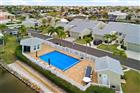 Sailboat water, no bridges to harbor, deeded dock (#20), 13, 500 lb boat lift, meticulously maintained and beautifully upgraded....what else do you need? This stunning open concept villa will impress you, from the serene and spacious entry courtyard, perfect for a spa or reading area, to the private entrance with a fountain to greet you. Once you enter this villa, you will be impressed with the decorative tile floors, elevated ceilings, skylights and the very large open concept kitchen, dining and living room area which is perfect for entertaining. The kitchen is stunning with a two level granite breakfast bar that seats six, stainless steel appliances, upgraded lighting and creative storage solutions such as pull out spice racks, lazy susan shelving and pantry style shelving. There is a wet bar in close proximity as well to help the flow of entertaining from the kitchen to the spacious Florida room. The master bedroom is quite spacious with a slider to the Florida room, two custom shelving walk in closets, an en-suite bathroom with a huge walk in tiled shower, soaking tub and a private lavatory space. There are two other spacious bedrooms that could easily fit a king sized bed(one is decorated as such), one sports a queen sized Murphy bed that can double as a home office. There are spacious closets in both, one of them being a walk in and the other being two separate entry but joined closets. The guest bathroom is beautifully upgraded with a walk in shower, linen closet and skylights to keep it light and bright. Both guest bedrooms are on the opposite end of the villa from the master to provide privacy for all. Interior laundry room has its own sink and there is a half bath in the main living area for guests. The beautiful Florida room is just over 500 square feet in size and has two options for you...either a wall of screens for air flow, or a sliding wall of panels to keep the heat out so that the mini split and two ceiling fans can keep it comfortable in the summer. There are roll down hurricane shutters that cover the Florida room screened area for protection, as well as storm protection on all other windows, both roll down and panels. This villa is easy to maintain, with all tile floors with the exception of the Florida room, which is painted concrete. All of the Isles Cove residents have a deeded dock and this one also has recently been upgraded with a 13, 500 lb lift, which is great for keeping your boat not only safe, but clean and easy to maintain. Community is professionally maintained and has kept up with the important upgrades that make the community beautiful-roof replacement 2024, well maintained roads, dock maintenance and a lovely clubhouse with heated pool and a gazebo. If you are looking to enjoy where you live and spend time living instead of renovating and maintaining, this might just be the perfect villa for you, come and take a look!