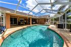 One or two adjacent lots may be added to the purchase of this lovely home – buyer’s choice (ask your agent for details). Splendid curb appeal leads you into the screened front porch which is the key to great cross-ventilation in our cooler months. Entering the great room, you will notice how its spaciousness is increased by a cathedral ceiling and how the 9’ sliding glass doors and clerestory windows provide so much natural light. The kitchen’s upgraded cabinets, SS appliances, tile plank flooring and pantry closet will delight any homemaker/amateur chef. The primary bedroom is large enough for a variety of furniture arrangements, its ‘walk-through’ closet has doors to both the bedroom and the ensuite bathroom which features both a shower and a tub, an 8’ long, dual sink vanity with a quartz countertop, and a linen closet. A privacy door closes off the guest bath and bedrooms 2 and 3, both of which have long built-in closets. Heated pool with a spray fountain, accordion shutters on some windows – some windows are impact-resistant glass, vinyl fence, whole house generator hook-up, 50 amp RV hook-up, irrigation, and more! MUCH MORE INFO is attached – ask your agent for copies, especially the FEATURES LIST and WARRANTY OUTLINE. This property comes with a ONE YEAR HOME WARRANTY for the buyer.