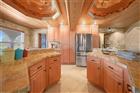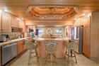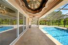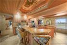 Unique is an understatement in describing this 4 bedroom, 3 bathroom Myakka River front home that its exterior and interior walls, along with floors, are Travertine. This gives the home a castle-like feel. The intricately handpainted, handcarved doors and ceiling panels brought in from various parts of the world, are found in every room in the home, along with a circular mosaic as a common theme. The kitchen is a great set-up for friends and family to cook and gather. The home is long and easily flows from each room. The 3 guest rooms and 2 bathrooms are located down a short hallway from the kitchen and family room. The caged pool and spa were added in 2019, and is conveniently accessible through sliding glass doors off of the family room. Beyond this room is an expansive more formal living room. On one end is a built in wall shelving unit that lights up. There are many nooks within the home that light up to add to the serene feel of the evening hours. Off of the formal living room is a formal dining room with wood caved table and chairs. As you move through the home, you will come to a laundry room, a door to the garage with its newly painted epoxy floor. A little way past this area is a bonus room that could be a den, or execise room. Before the laundry room is a stairway to the primary suite and upper deck that overlooks the river. There is an area off the kitchen that opens out to a staircase that also leads to the upper deck. Currently the sellers are getting quotes to fix this area. There is 200 feet of Myakka River water front and a dock that is 230 feet long with a 20, 000 lbs boat lift with a canvas cover. The El Jobean Fishing Pier is down the road. And though you can see the El Jobean bridge, you do not hear the traffic. It is nicely serene, but close to other attractions such as golf, Gulf beaches, dining and shopping, hiking, and of course boating. The home is being sold turnkey. A few art pieces may not convey. Neiher will the John Deere mower, ATV nor jet ski. They will be removed. This home is a must see to appreciate its uniqueness and location on 1.46 acres of Myakka River frontage. Paradise awaits!