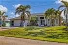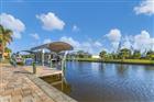 Discover this stunning 3-bedroom, 2-bathroom pool home with a den in the sought-after South Gulf Cove community. Boasting Southern exposure on a canal, this home offers breathtaking waterfront views and quick Gulf access with a Trex dock, 10, 000 lb covered boat lift, seawall, and water/electric hookups. Step inside to find luxury vinyl flooring throughout, 8’ doors, and hurricane impact windows and doors. The living room features tray ceilings with lighting, crown molding, an elegant built-in wall accent, an electric fireplace, and expansive zero-corner sliders, seamlessly blending indoor and outdoor living. The gourmet kitchen is a chef’s dream, complete with a breakfast bar, stainless steel appliances, a stunning tile backsplash, solid wood cabinets with under-cabinet lighting, a closet pantry, granite countertops, and a dedicated coffee/wet bar. The primary suite is a private retreat with lanai access, his-and-her walk-in closets, and a luxurious en-suite bath featuring dual sinks and a large walk-in tile shower with a bench and dual shower heads. The split-bedroom floor plan ensures privacy, with spacious guest bedrooms featuring plantation shutters and a guest bath that provides direct pool access. The den/home office includes dual built-in desks for convenience. Additional interior highlights include stylish ceiling fans in every room, a central vacuum system, a fully equipped laundry room with a sink and cabinets, and wiring for a security system. The 3-car garage is a standout, offering epoxy flooring, a 2024 garage door, a screen door for two bays, and built-in cabinetry. The outdoor oasis features an oversized paver driveway and walkways, mature landscaping with Royal Palms, and a screened front entry leading to the elegant double doors. The heated saltwater pool is surrounded by a spacious lanai with panoramic screens for unobstructed water views, an outdoor shower, a sink and refrigerator, and a fully fenced, irrigated backyard. The lanai was rescreened in 2023, and the home boasts a new 2023 roof and a hurricane shutter for added protection. This waterfront gem offers the ultimate Florida lifestyle—luxury, comfort, and direct boating access to the Gulf. Don’t miss your chance to own this exceptional home!