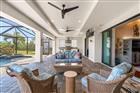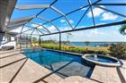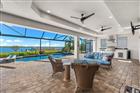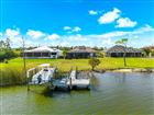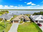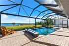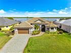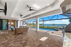 Welcome to a boater’s paradise perfectly paired with refined coastal living. Located on the Interceptor Lagoon waterway, this stunning sailboat-access waterfront home offers a direct route to the Gulf, making every day feel like a vacation. From the moment you arrive, this home impresses with its tile roof, PAID OFF solar panels, paver driveway, screened entryway, and lush, mature landscaping that sets the tone for what lies within. This meticulously designed 3-bedroom, 2.5-bath residence with a den is rich in high-end finishes, including impact windows and doors, plantation shutters, 8’ interior doors, 7¼” baseboards, crown molding, tray and coffered ceilings, and quartz countertops throughout. Added upgrades such as foam insulation over the home & garage and a central vacuum system elevate both comfort and efficiency. Step through the double French doors into a freshly painted, split-bedroom floor plan where the great room welcomes you with lit coffered tray ceilings, engineered hardwood floors, custom built-in shelves, and expansive 8’ sliders that frame peaceful lagoon views. Decorative columns add architectural charm, seamlessly flowing into the heart of the home. The chef’s kitchen is both stylish and functional, featuring porcelain tile floors, propane Viking appliances, soft-close cabinetry, a breakfast bar, and a rare pocket-door butler’s pantry complete with additional counter space, microwave, and beverage fridge. The adjoining dining room stuns with a lit double tray ceiling and a dramatic zero-degree slider, opening the home effortlessly to the lanai for true indoor-outdoor. The primary suite is a private retreat, boasting hardwood floors, a lit double tray ceiling, and a custom-built-in illuminated reading arch. The spa-like en suite bath features a large walk-in tiled shower, clawfoot soaking tub, dual quartz vanities with soft-close cabinetry, and a spacious walk-in closet. Two additional bedrooms are generously sized with tile floors, ceiling fans, and plantation shutters. The second bathroom offers a glass-enclosed walk-in shower, quartz vanity, and elegant oil-rubbed bronze fixtures. A versatile den with hardwood floors, double doors, a fan, and shutters makes an ideal office, media room, or guest space. The laundry room continues the home’s cohesive design with ample cabinetry and a quartz sink. The 2-car garage is finished with epoxy flooring and includes a hung storage cabinet system, offering both style and practicality. Step outside to what may be the home’s greatest showstopper—the expansive under-truss screened lanai with tray ceilings, designed for ultimate outdoor enjoyment. This space features a heated saltwater pool and spa with water feature and sun shelf, a striking built-in fire wall, and a fully equipped outdoor propane kitchen with vented hood, RCS grill, mini fridge, quartz sink, and ample prep space. A nearby pool-access half bath adds convenience. Beyond the lanai, enjoy an outdoor shower, an oversized backyard, and sweeping views of the lagoon waterway. Boaters will love the composite dock with new caps, rope, complete with electric, water, and a 10, 000 lb boat lift. The irrigation system pumps directly from the lagoon, keeping the grounds green and lush year-round at no cost! This exceptional waterfront home seamlessly blends luxury, efficiency, and the ultimate Florida boating lifestyle—a rare opportunity to own sailboat water with Gulf access and resort-style living right in your backyard!