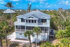 Located on Gasparilla Island beyond a private driveway, this one-of-a-kind retreat spans generous acreage and captures panoramic bay and coastal water views. Positioned on 1.88 acres and framed by native landscaping, the serene setting feels worlds away, yet remains just minutes from the charm of Boca Grande village. Spanning 2, 951 square feet of refined living space with a total footprint of 6, 287 square feet, the residence features three bedrooms plus a study or bonus room that can easily serve as a fourth bedroom, along with three-and-a-half baths. An interior elevator services all floors, ensuring effortless access throughout. The interiors reflect a sophisticated coastal aesthetic, highlighted by light-colored hardwood floors and thoughtfully designed living spaces. The study features a wet bar, opens to an exterior porch, and offers a perfect spot for stargazing, while the upstairs primary suite enjoys its own private porch—both providing sweeping Bay views and front-row seats to abundant wildlife, including osprey, pelicans, and egrets. An expansive porch running the length of the home invites morning coffee with sunrises over the water and evenings bathed in soft sunset hues. Electric hurricane shutters provide peace of mind, while the three-car, climate-controlled garage plus dedicated golf cart space adds everyday convenience. Leisurely bike rides or golf cart trips along the paved path lead directly into the village of Boca Grande, known for exceptional dining, unique shopping, world-class fishing, and outstanding boating. Properties of this size, setting, and water-view presence are exceptionally rare on the island, making this a truly special opportunity.