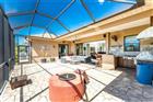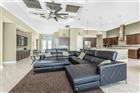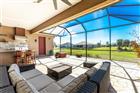 Located within a desirable golf course community and set on an oversized greenbelt lot, this stunning custom-built home offers over 3, 200 square feet of thoughtfully designed living space in a deed-restricted neighborhood. Built in 2015, the residence blends comfort, elegance, and exceptional functionality. The living room showcases a beautiful coffered ceiling with crown molding, adding a touch of architectural elegance. Sliding glass doors open onto the lanai, making this a perfect home for entertaining. The bar area provides plenty of room for mixing your guest's favorite cocktails, with built in cabinetry for storing all your beautiful stemware. Featuring six spacious bedrooms, including four private ensuite suites, this home offers incredible flexibility for a variety of lifestyles. Whether you need all six bedrooms or prefer to transform one into a home office, craft room, fitness studio, or hobby space, the possibilities are endless. The home has four and a half bathrooms, each with a wood vanity & granite top, and tiled showers. The interior showcases tiled flooring throughout for easy maintenance, impact windows, and hurricane protection at the front double-door entry for added peace of mind. Designed for both everyday living and entertaining, the chef’s kitchen features rich wood cabinetry, granite countertops, and a stylish tiled backsplash. A large island with a salad sink and butler’s pantry provides extra prep space and storage. High-end appliances include a Samsung double-door refrigerator, Bosch microwave/convection oven, separate Bosch built-in oven, LG Studio five-burner cooktop with stainless downdraft ventilation, and an LG dishwasher. A generous breakfast bar with seating for six flows seamlessly into the adjacent dining area, creating the perfect gathering space for family and guests. The spacious primary suite offers sliding glass doors leading to the lanai, three walk-in closets with built-in organizers, a tray ceiling, and ceiling fan. The luxurious primary bath features dual vanities w/granite tops, a linen closet, and a spacious Roman shower. Additional features include a laundry room with utility tub and Samsung washer and dryer, as well as a central vacuum system for convenience. The 2.5 car garage has epoxy floor coating for easy cleanup, pull down stairs for attic access, and automatic garage door opener. Outdoor living is just as impressive. The extended screened lanai features paver decking, a fully equipped outdoor kitchen with gas burner, gas grill, and wet sink, along with a built-in gas firepit, creating the perfect setting for relaxing evenings or entertaining guests. A circular driveway provides ample parking for multiple vehicles and adds to the home’s impressive curb appeal. This exceptional property offers the perfect combination of space, quality craftsmanship, and resort-style living within a beautiful golf course community. Area beaches, shopping, world class fishing, quaint shops and unique restaurants are all close by! Take a look today!