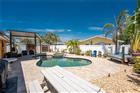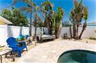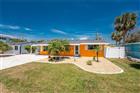 Sun, Sand, and Saltwater Pool Days! Live life on island time in this charming two bedroom, two bathroom concrete block home on Manasota Key, complete with a true backyard tropical oasis featuring a 2017 heated saltwater pool and spa. Located in the Englewood Shores subdivision, the property includes deeded access to the beautiful white sandy beaches through three platted beach easements. The vibrant orange exterior reflects the colors of the evening sunsets and is complemented by a spacious shelled driveway, a 2023 roof, and fresh landscaping. Positioned on the south end of the Key, you are just a short distance from the beach, local restaurants, and relaxed waterfront tiki bars. Sold turnkey furnished, the home has been thoughtfully updated inside and out and is ready to enjoy. Epoxy flooring runs throughout the main living areas, with tile in the bathrooms and soft coastal tones that create a bright and comfortable atmosphere. The renovated galley style kitchen features modern gray cabinetry, stainless steel appliances, and an adjoining dining area with room to gather with family and friends. The light filled living room offers multiple windows overlooking the private backyard. A sliding glass door allows the living room to be closed off to create a private third sleeping space, complete with a sleeper sofa for added flexibility when hosting guests. The main bathroom includes a tiled walk in shower with a frameless glass partition, tile accent wall, and a quartz topped vanity. The second bathroom offers a convenient step- in shower. Step outside and discover your own tropical retreat. The pool and spa feature automated controls and are surrounded by a paver deck, oversized awning, rock and shell landscaping, full privacy fencing, and a storage shed that is perfect for beach gear and kayaks. Additional updates include impact windows, hurricane straps, an impact rated front door, updated electrical breakers, outlets and switches, a new 2024 air conditioning system and hot water heater, along with smart home features such as a security camera, thermostat, and routers. Manasota Key is known for its quiet beaches, natural beauty, and laid back coastal lifestyle with easy access to boating, fishing, and waterfront dining. Whether you are looking for a vacation rental opportunity, a seasonal retreat, or a place to relax by the pool after a day at the beach, this home at 1245 Gulf Boulevard offers the perfect island escape.